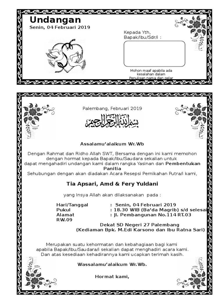19 maret 2016 anak kami marjiyanti pukul : Search results for contoh format surat undangan pembentukan panitia pernikahan bagi anda yang ingin mengetahui berbagai contoh surat lengkap 2018 silahkan kunjungi langsung situs edukasipro situs. undangan pembentukan panitia sebagai rasa syukur atas nikmat dan karunia yang dilimpahkan allah swt kepada kami seraya memohon rahmat dan ridhonya kami bermaksud menyelenggarakan acara pembentukan panitia pernikahan anak kami winda karmelita shut. Contoh undangan pembentukan panitia identity.scribd. Download desain undangan pernikahan layout photoshop.