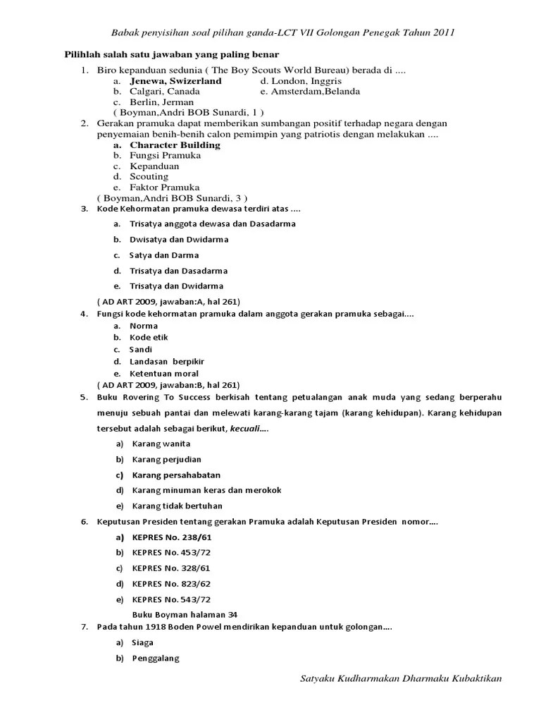 Contoh soal cerdas cermat pramuka beserta jawabannya docx pilihan ganda pramuka kumpulan soal pramuka.